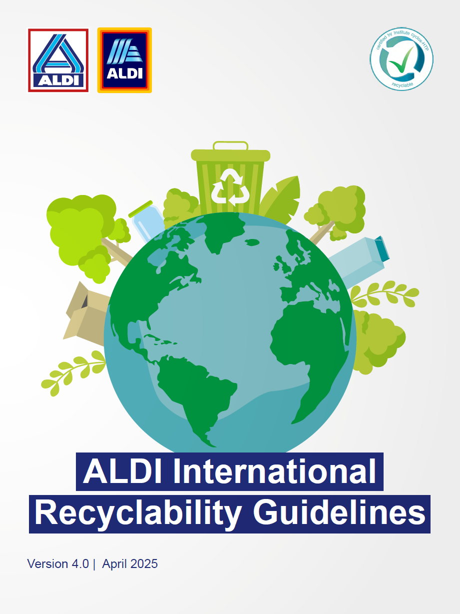 ALDI has experienced a high demand to bring further clarification to our business partners on requirements for recyclable packaging. Therefore, “ALDI’s International Recyclability Guideline” was created to support our suppliers and buying teams to optimise packaging and simplify communication throughout the supply chain. It provides them with a comprehensive insight into what packaging formats are recyclable in each ALDI market. Additionally, we have made our guideline publicly available in order to share further insight into national specific recyclability systems.